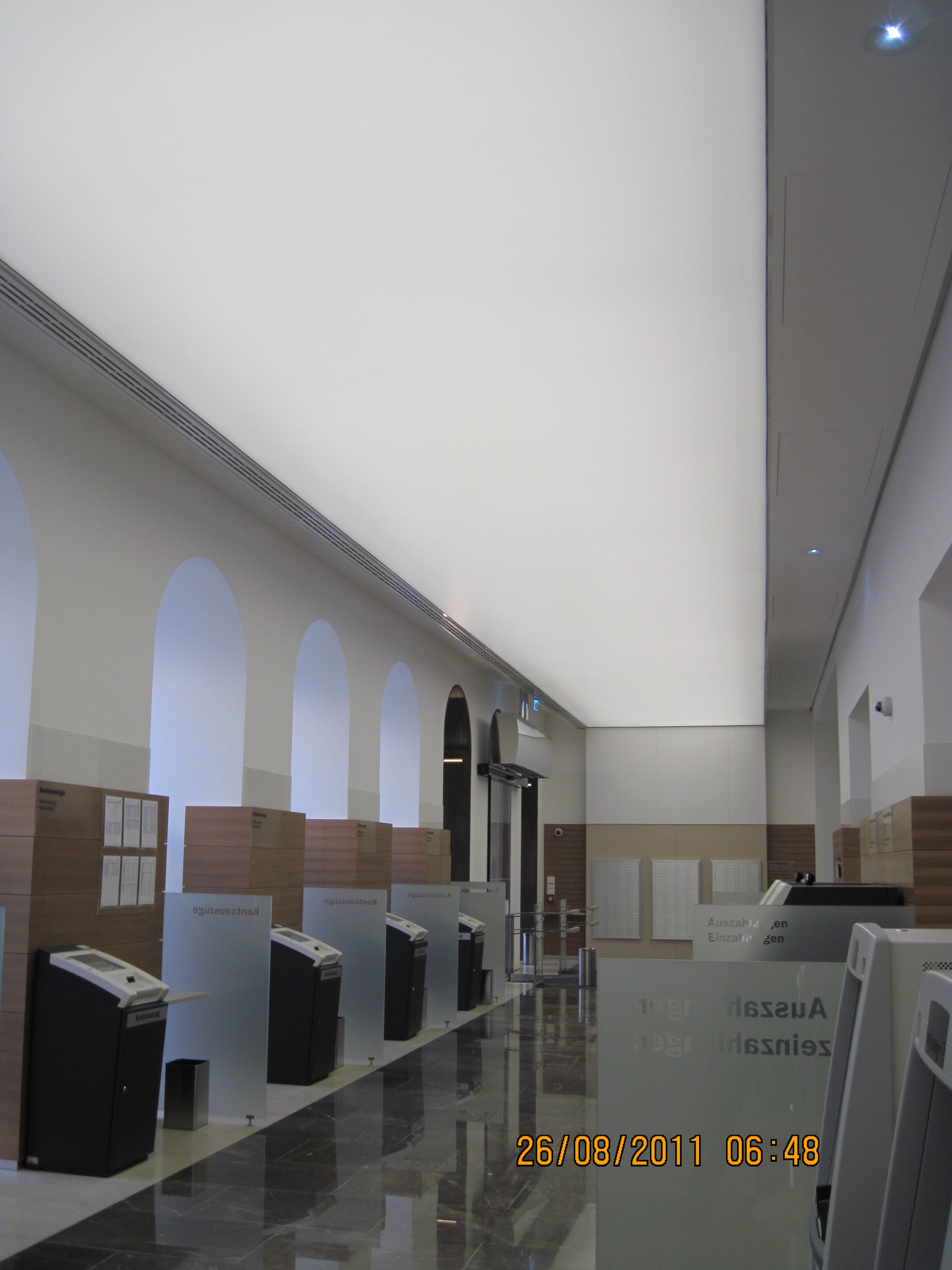 ERSTE Bank 24m lang und 3,2m breit ohne Naht Hinterleuchtung mit Leuchtstofflampenmodulen T5 DALI dimmbar